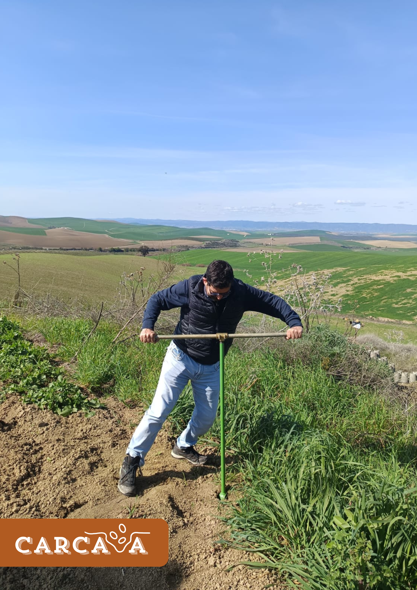 El pasado miércoles instalamos 4 sensores de humedad de la marca Cesens®. Agricultura 5.0 en puntos estratégicos de la finca: tres en los taludes y uno en la cabecera de una cárcava que estamos monitorizando, donde previamente habíamos construido un dique de contención. Estos sensores están conectados a un Datalogger alimentado por energía solar, lo que nos permitirá registrar y analizar la evolución de la humedad y temperatura del suelo en tiempo real.