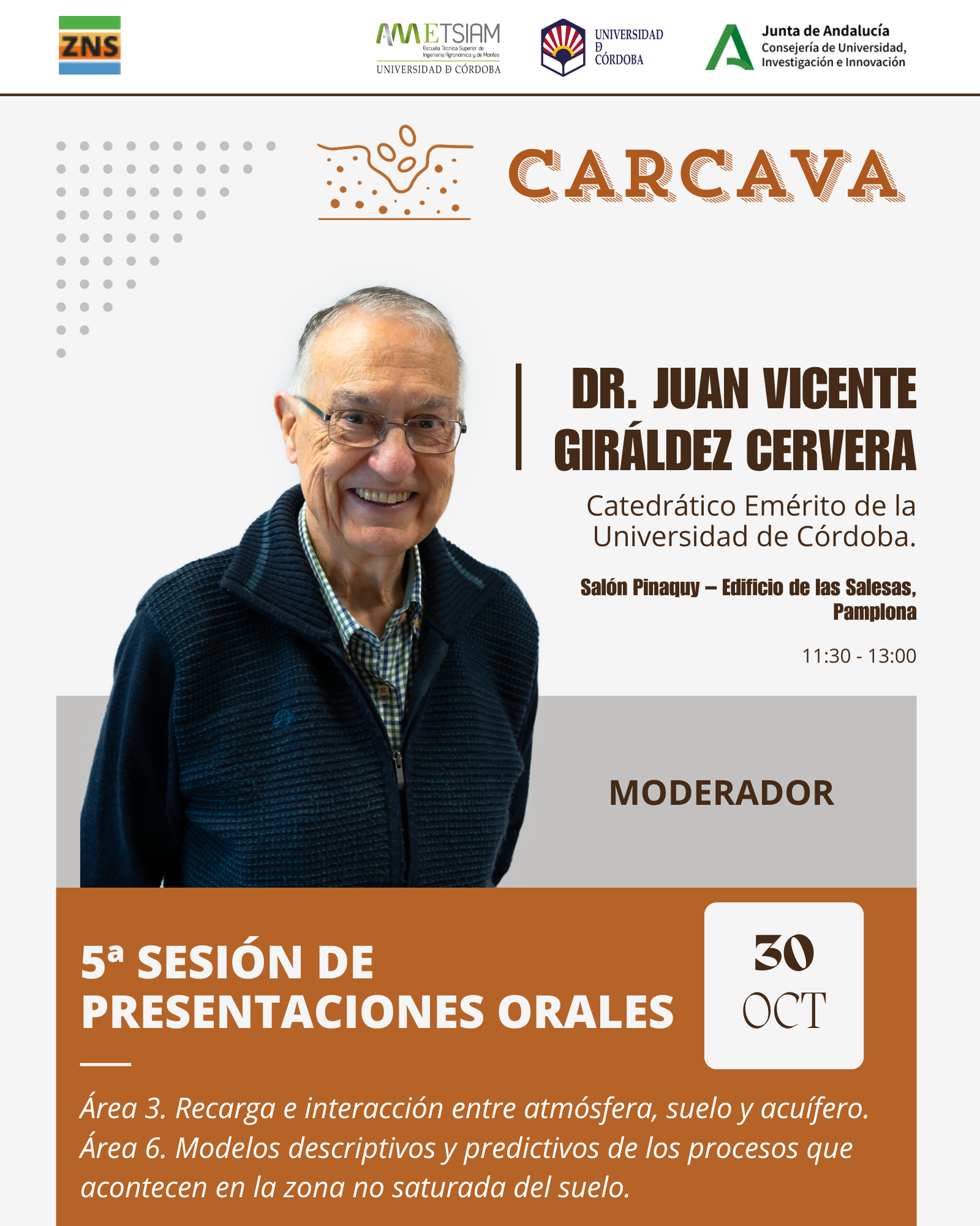 - Dr. Juan Vicente Giráldez Cervera, catedrático emérito de la Universidad de Córdoba, ha actuado como moderador de la sesión de presentaciones orales correspondiente a: